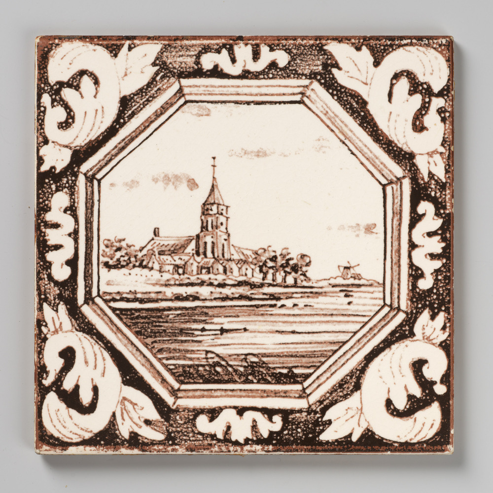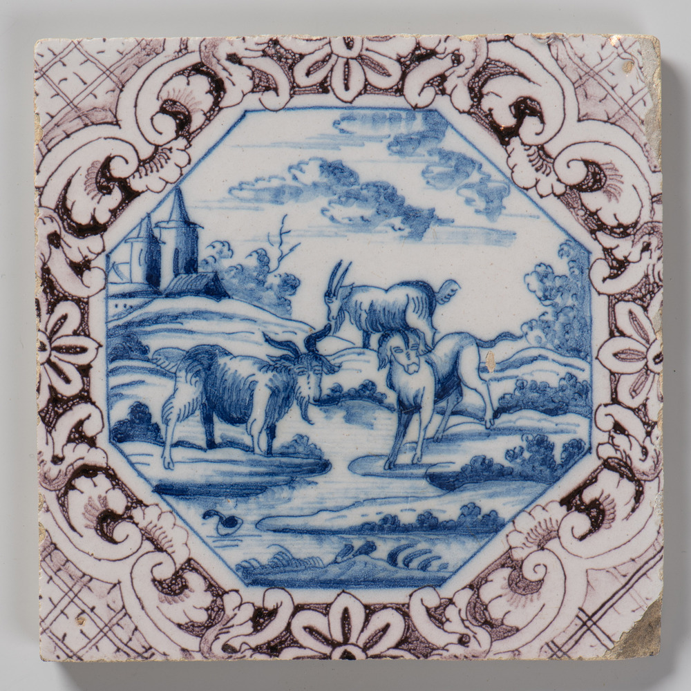 tegel van aardewerk met tinglazuur, voorstellende: l...