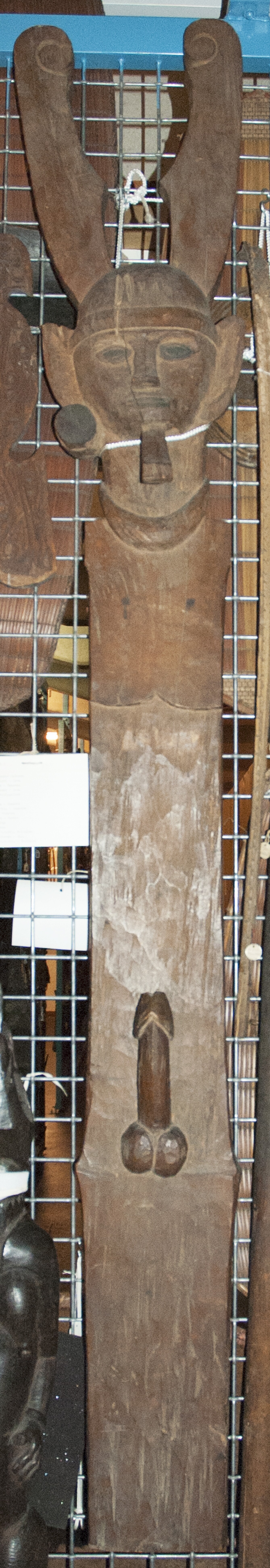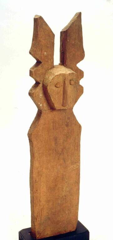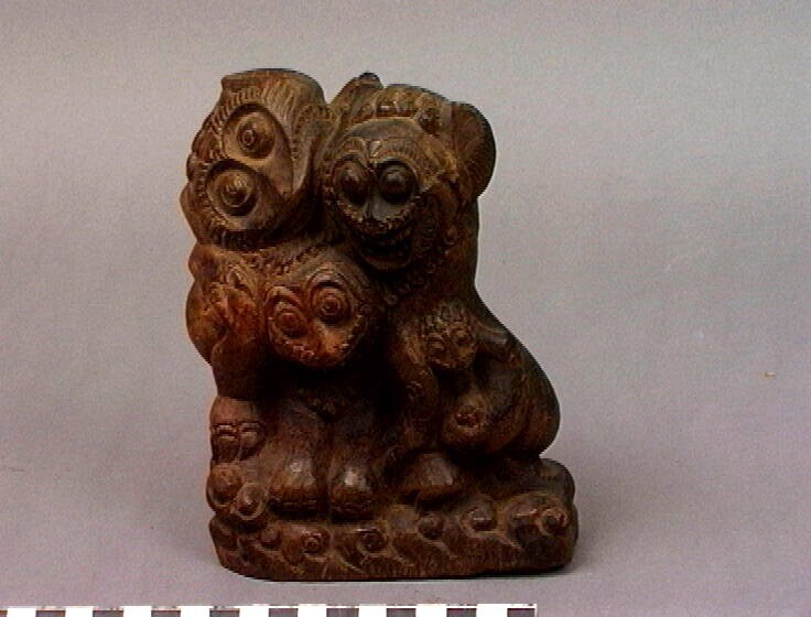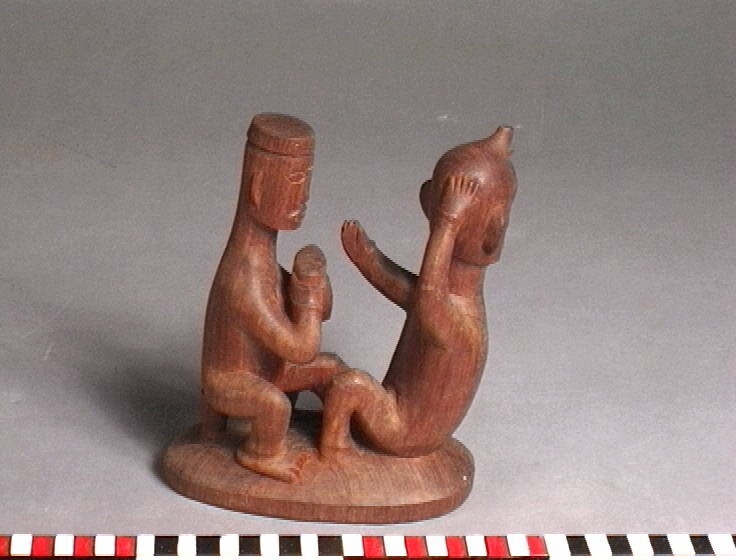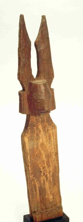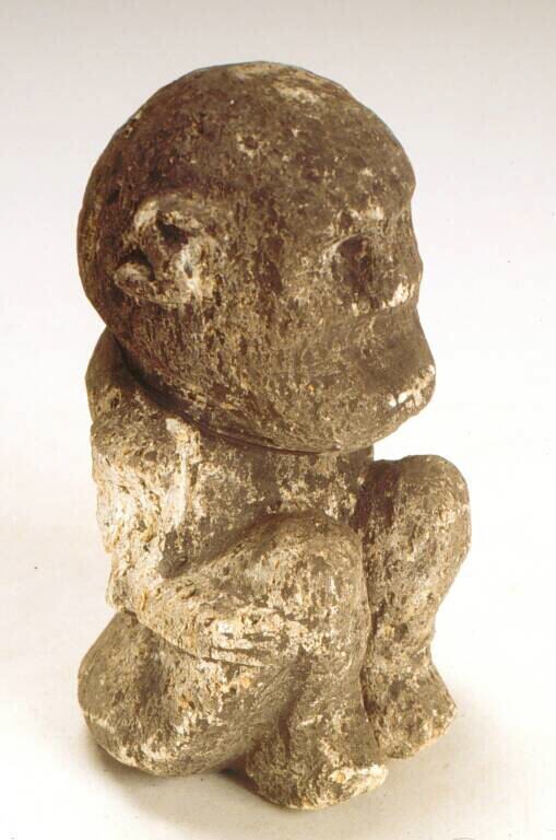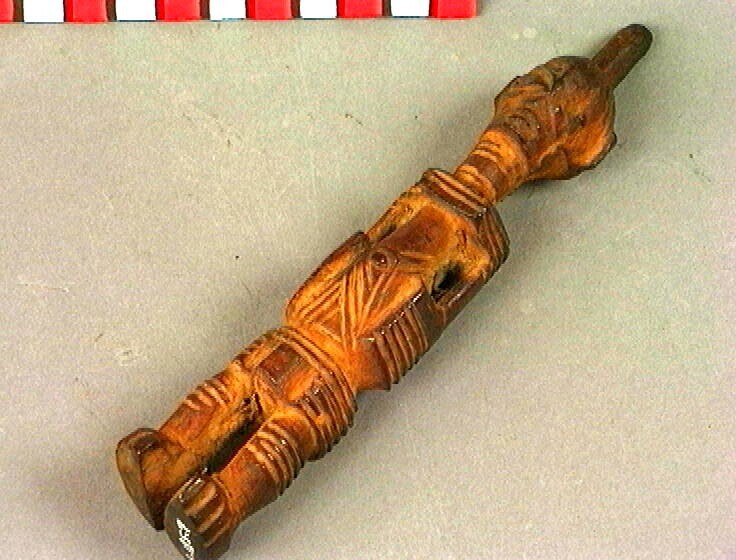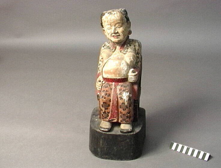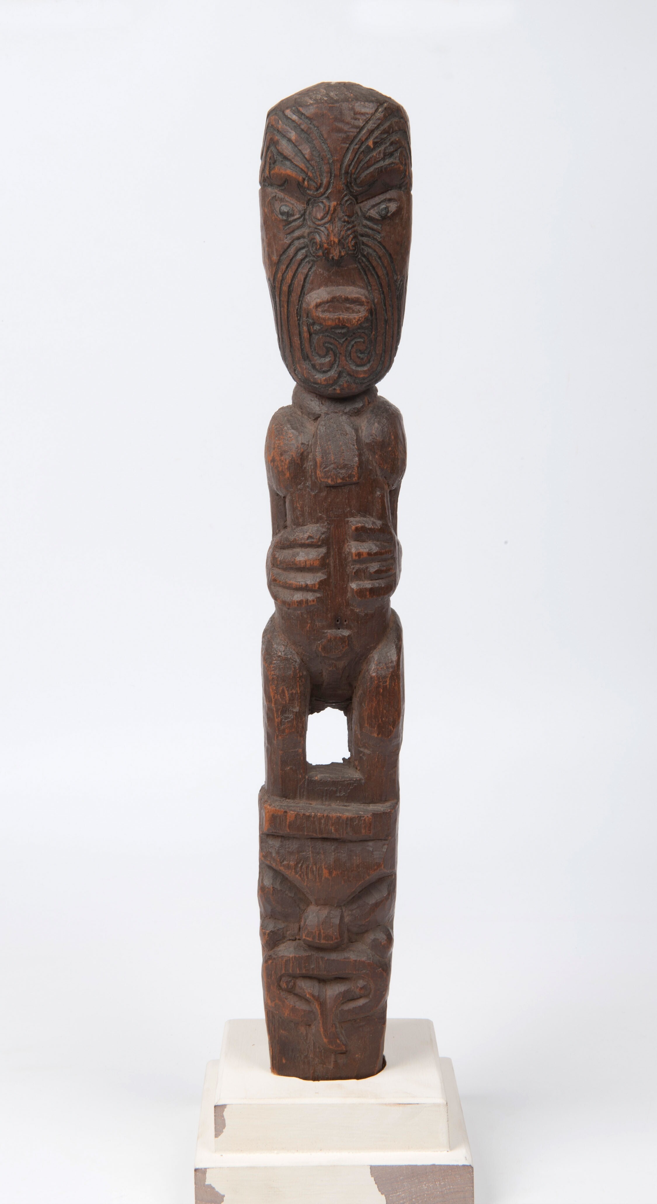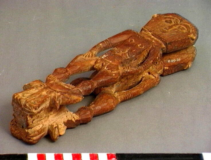 Houten beeldje, teko teko, gevelfiguur van een Maori...