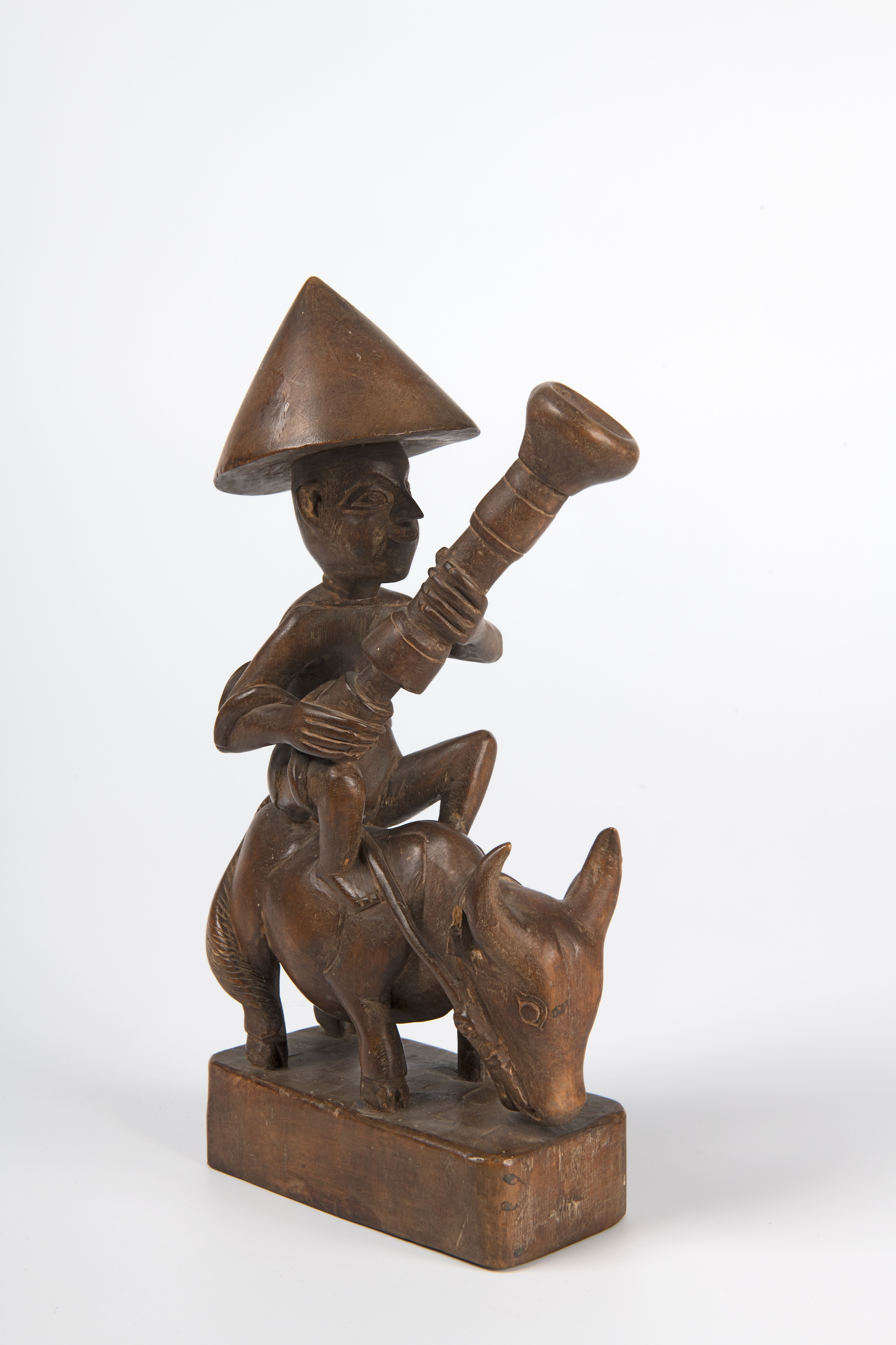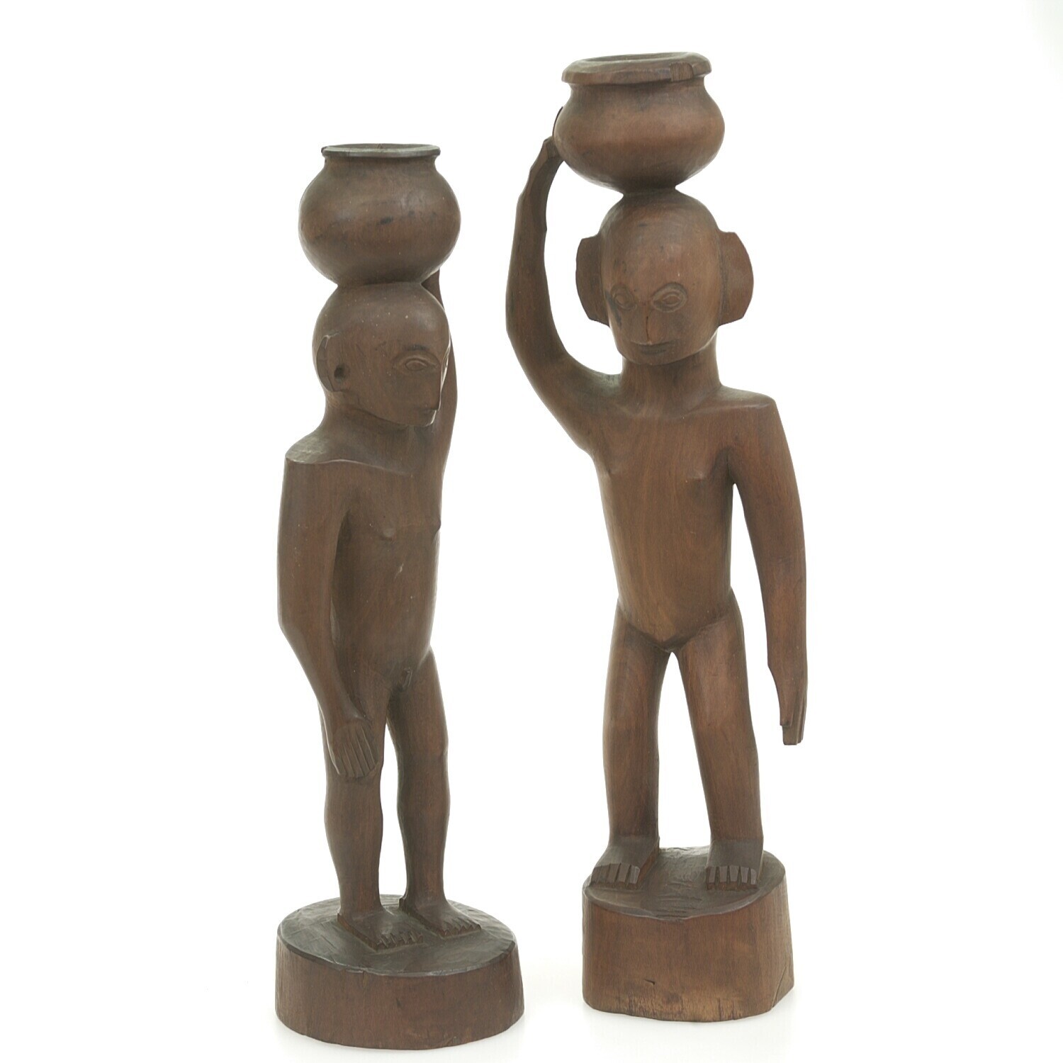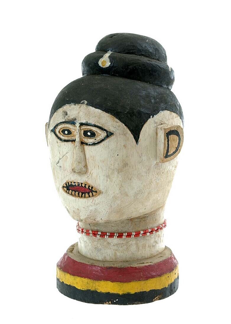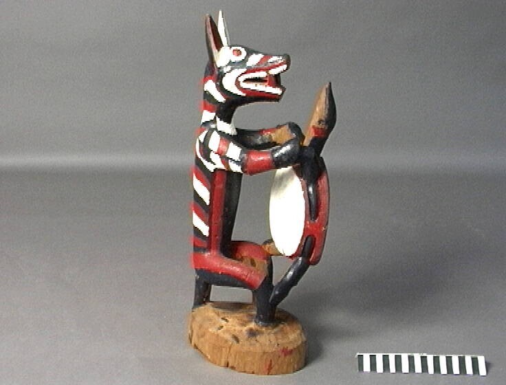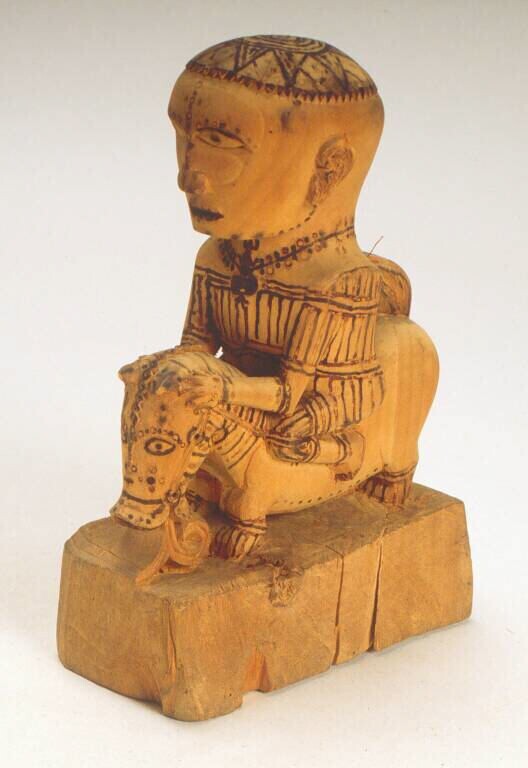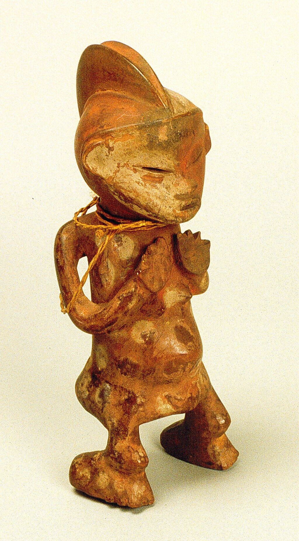 Houten beeldje, teko teko, gevelfiguur van een Maori...