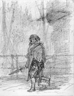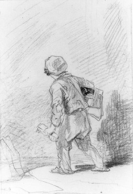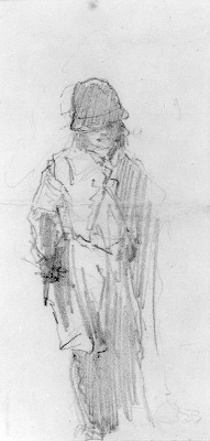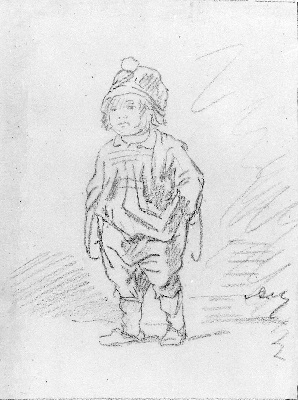 Jongen met muts en jas, de handen in de jaszakken (A...