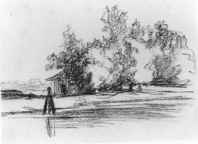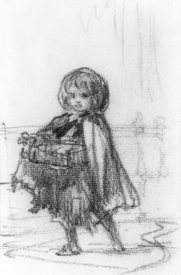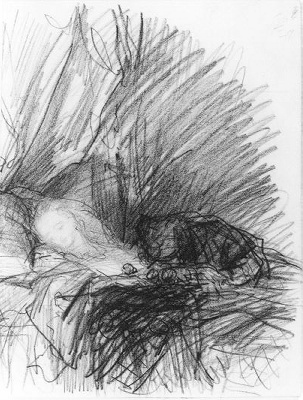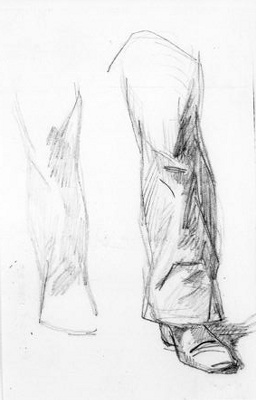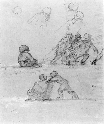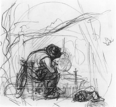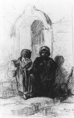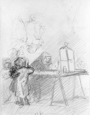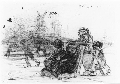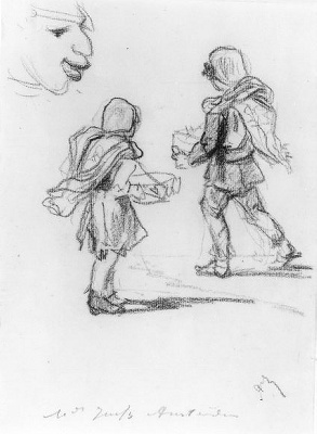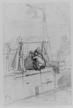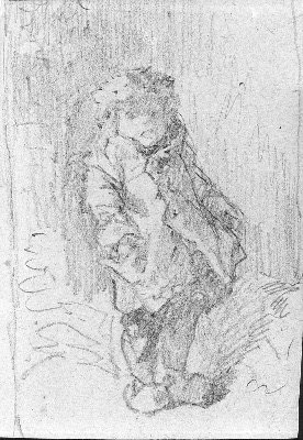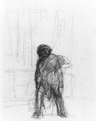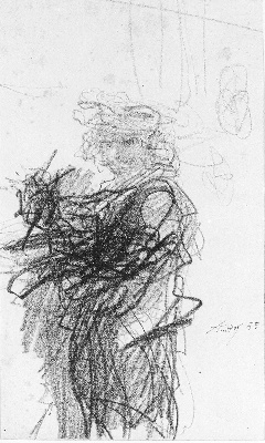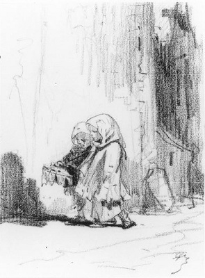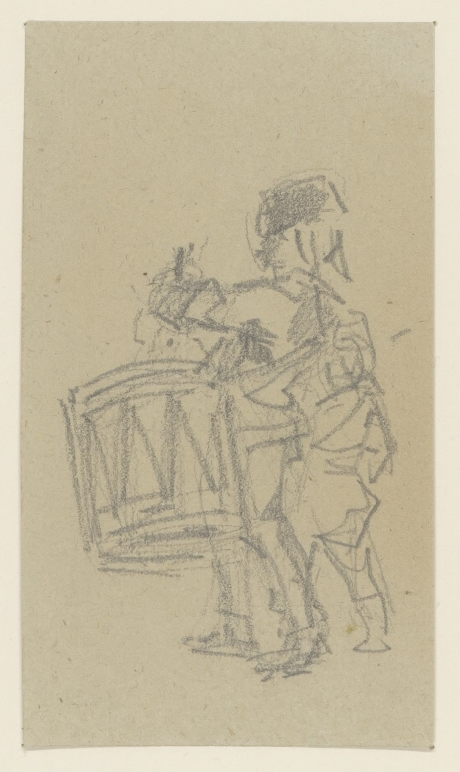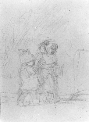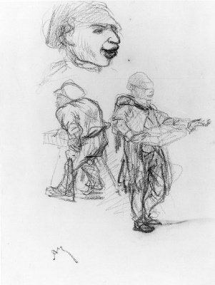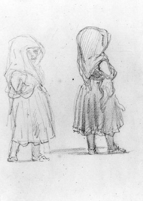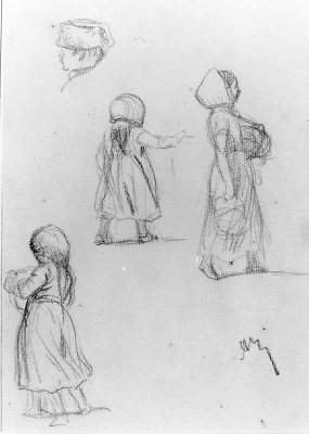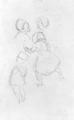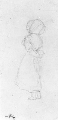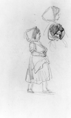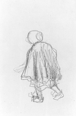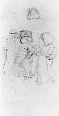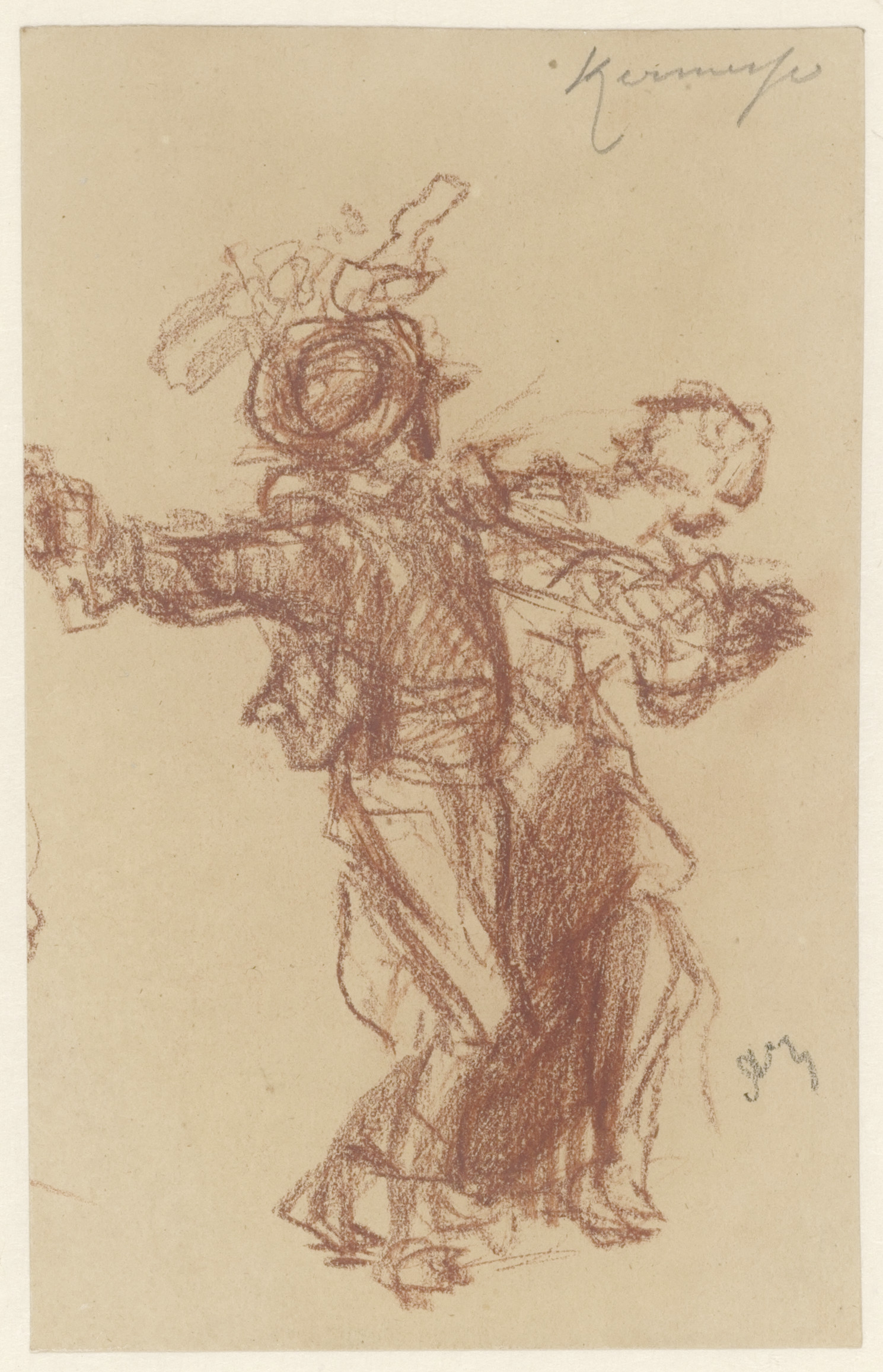 Studieblad met o.a. een naar rechts lopende vrouw en...