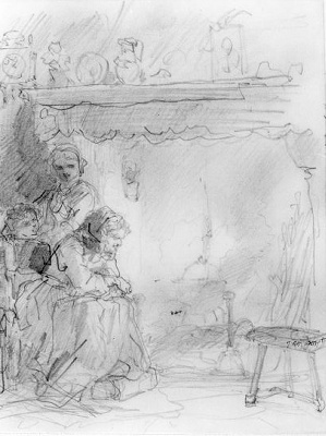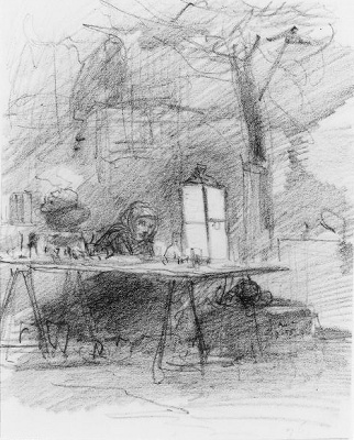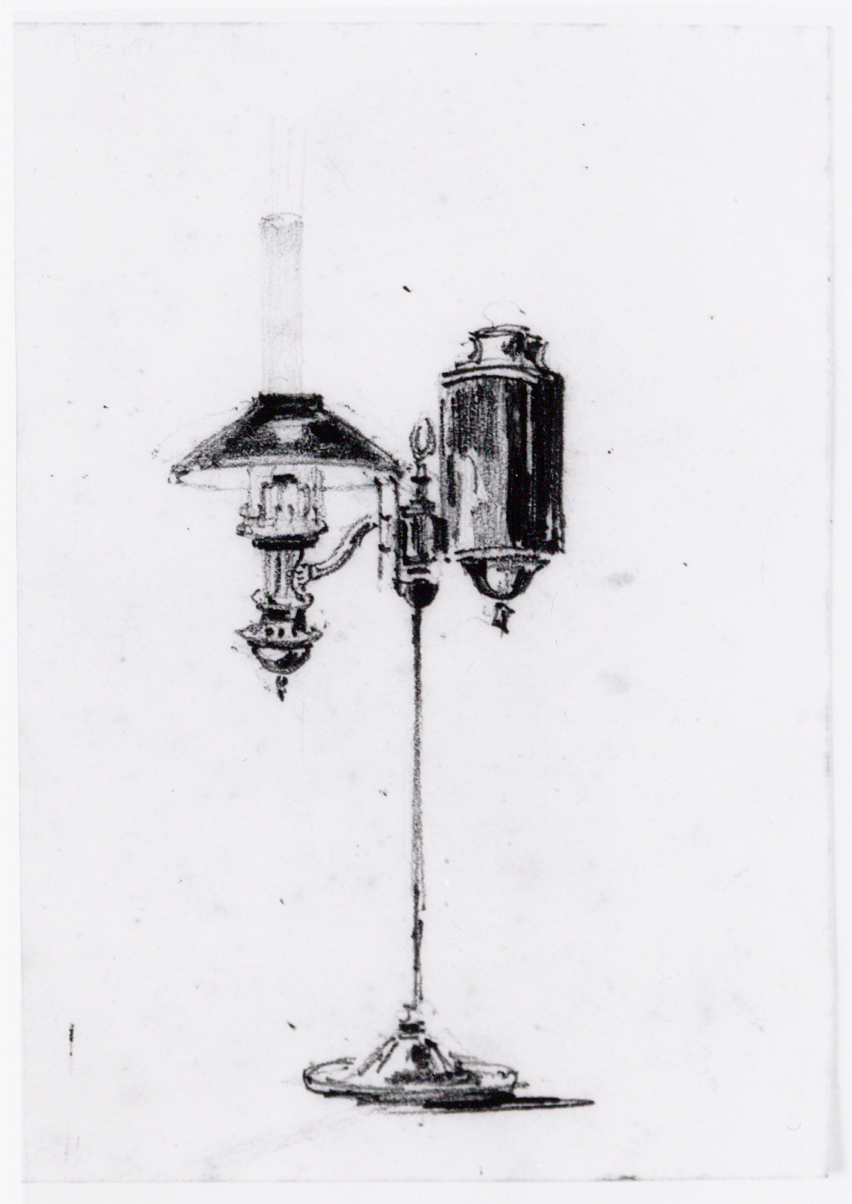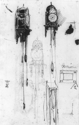 Studieblad met lantaarnklokken (recto). Leunstoel (v...