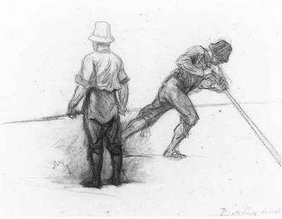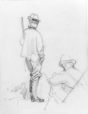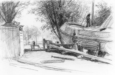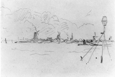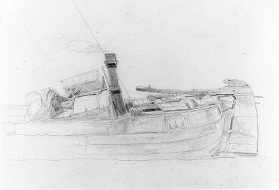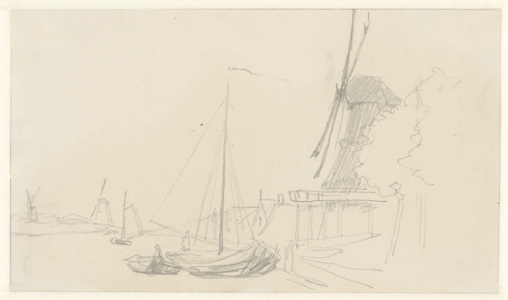 Schetsblad met o.a. gedeelte van een schip en schipper