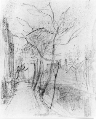 Een Amsterdamse gracht bij nacht (recto). Lopend fig...