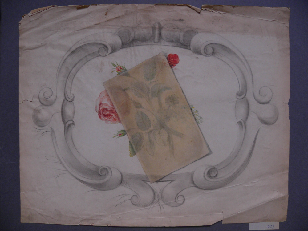 Litho, voorstellende ranken met bloemen en leeuwenko...