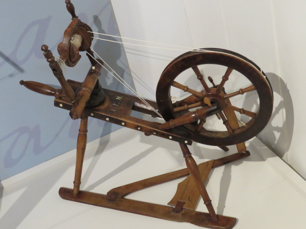 spinnewiel van hout, voor kind, met initialen A.K.M....
