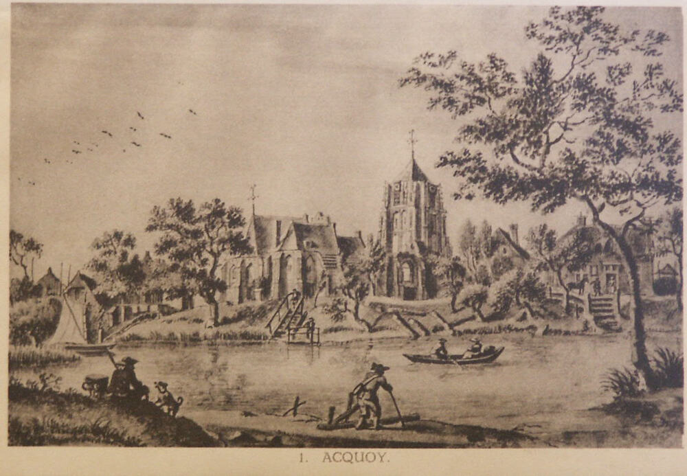 Reproductieprent, voorstellende het dorp Acquoy aan ...