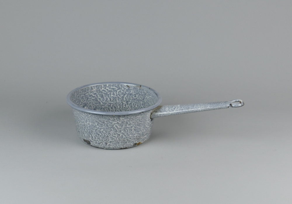braadslede, gewolkt grijs emaille met twee handgrepe...