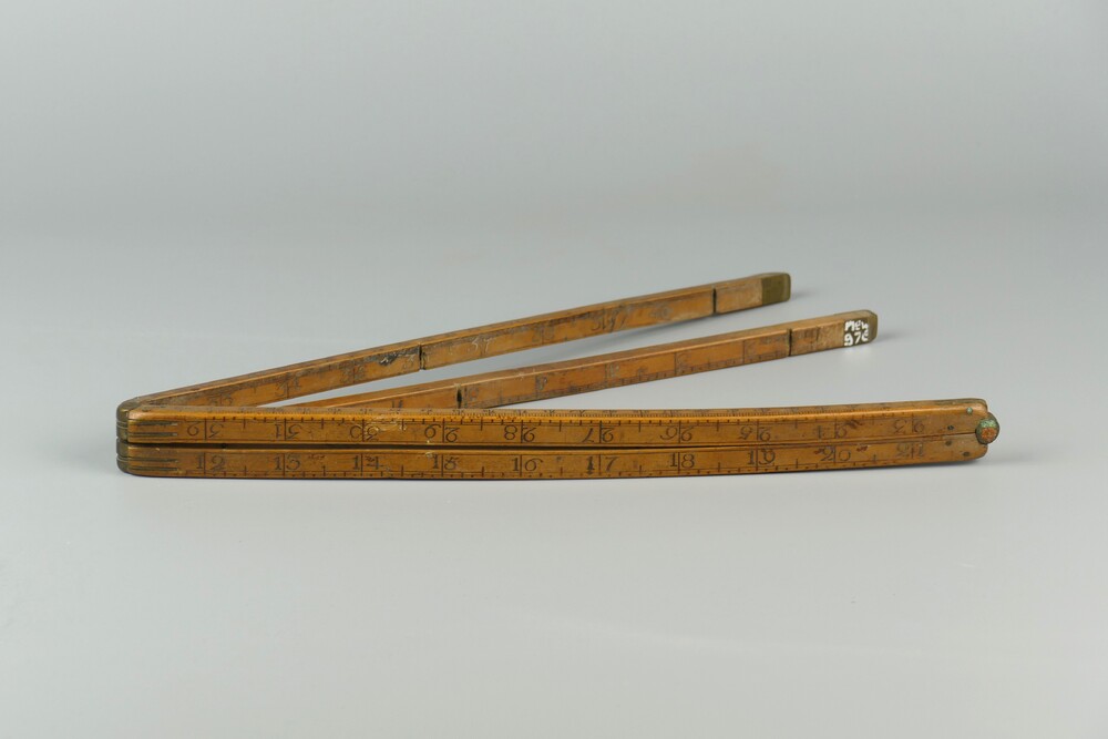 palmhouten duimstok met koperen scharnieren en doppen