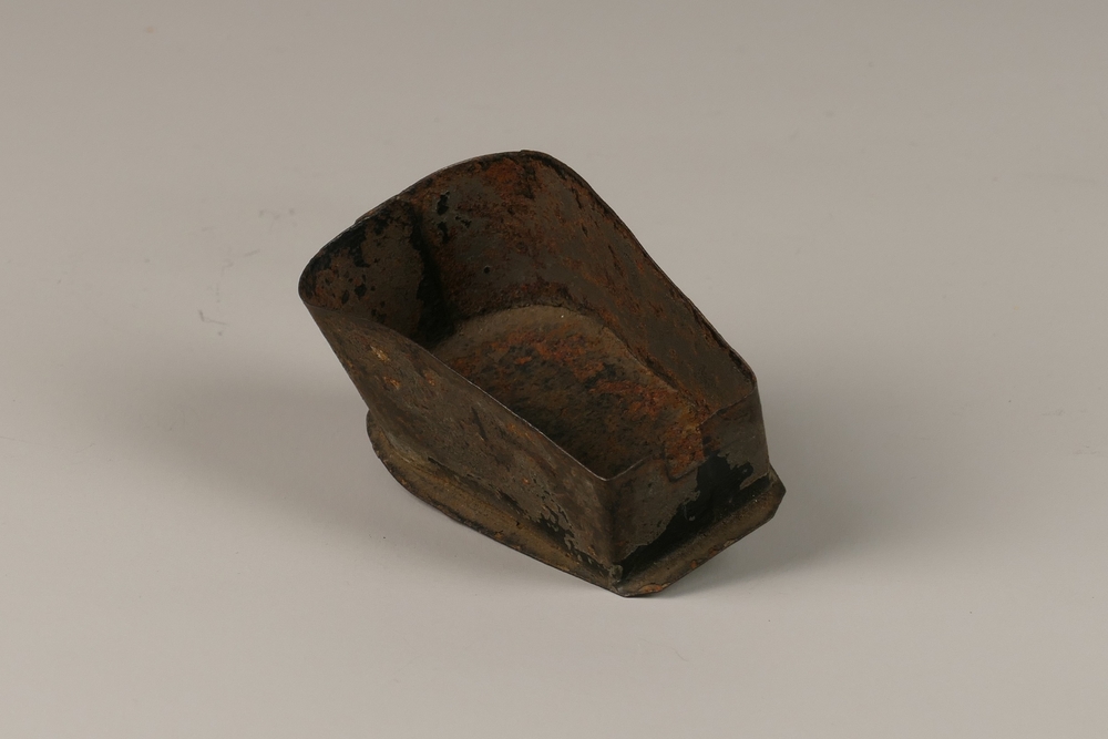 Pijpenschuitje van gelakt blik.
