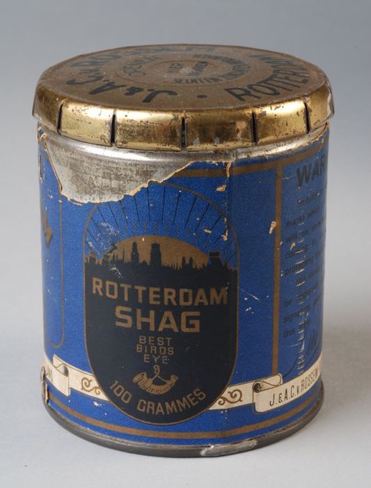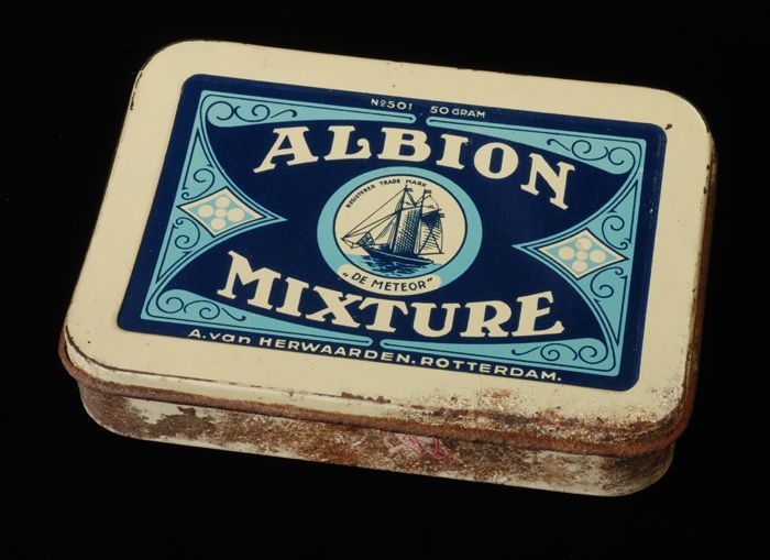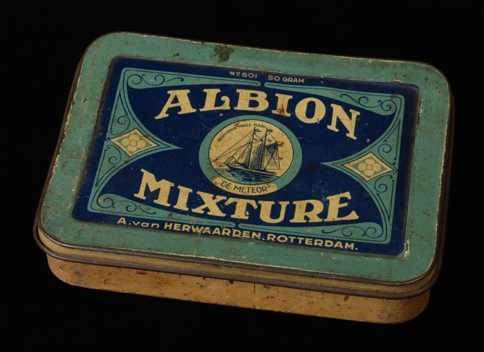 Bruin tabaksblik met los deksel, Van Rossem, product...