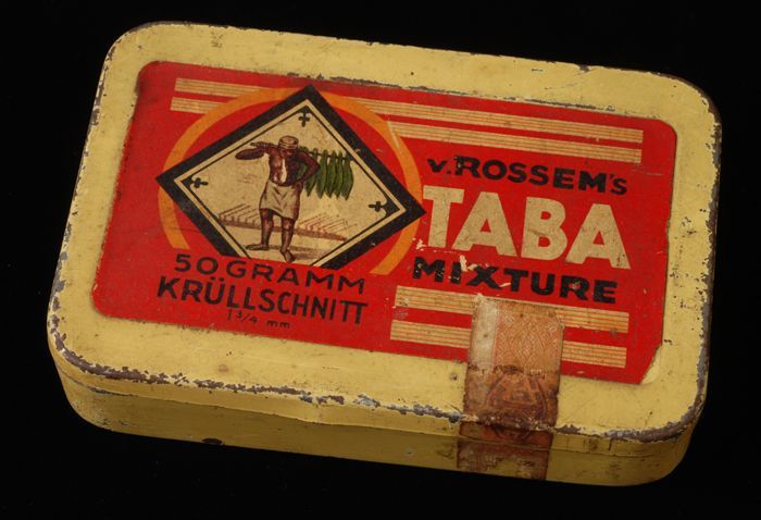 Geel-beige tabaksblik van Van Rossem, met inhoud, Su...