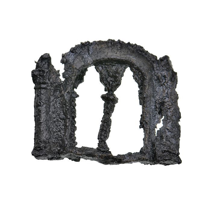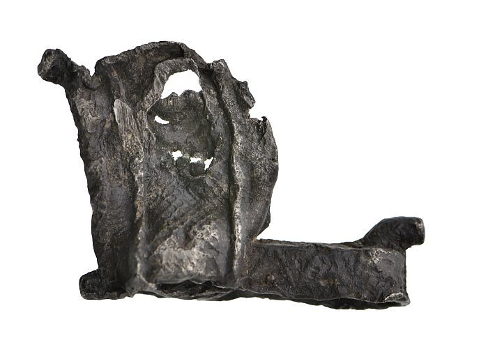 Fragment van tinnen pelgrimsinsigne, onderstuk met g...