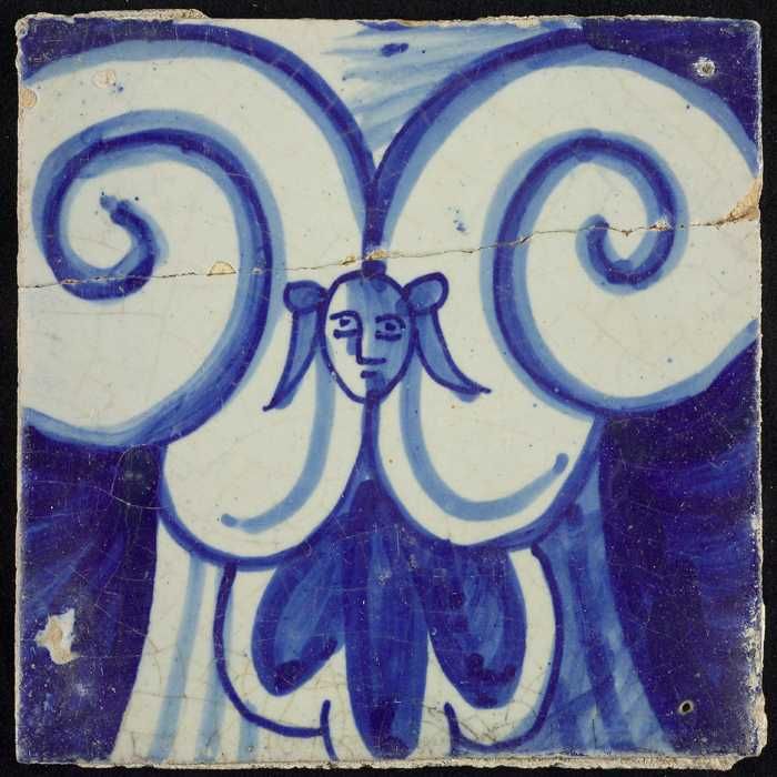 Tegel van schoorsteenpilaster, blauw op wit, gestile...