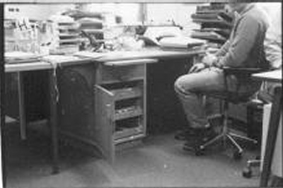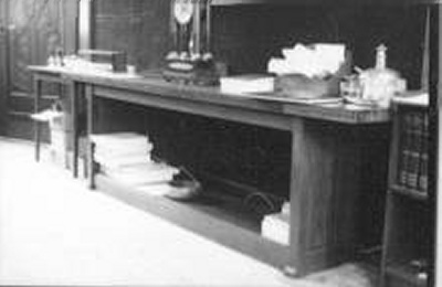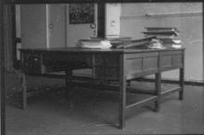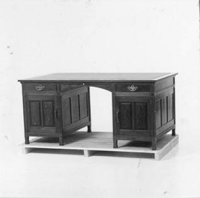 Bureau met twee bijzetkastjes en een bijzettafeltje