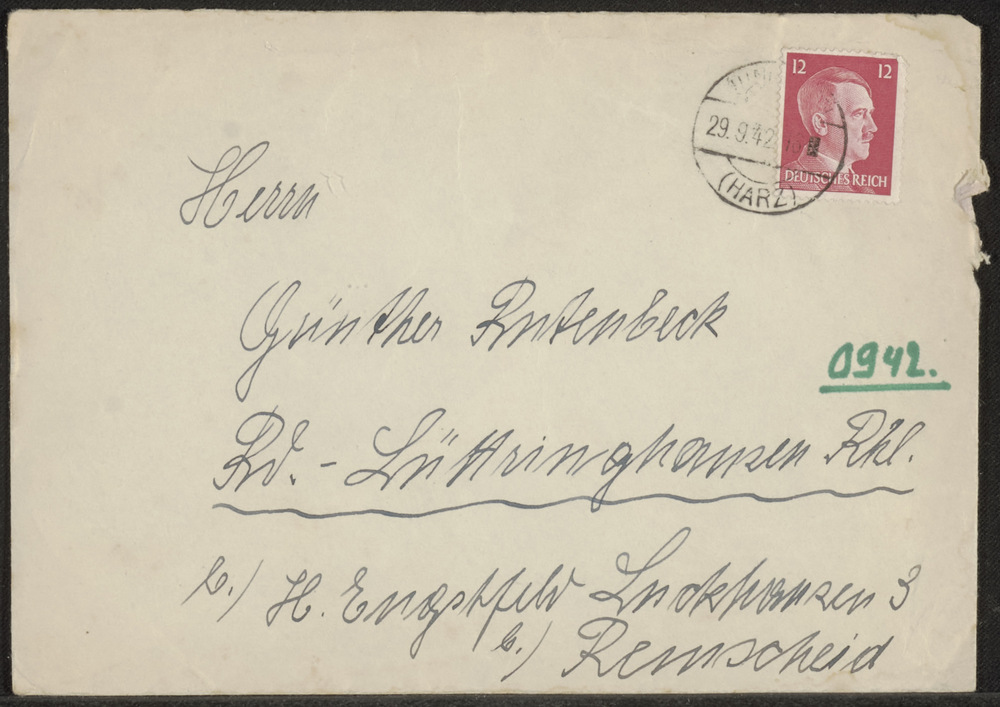 Cremekleurge Envelop aan Günther Rutenbeck