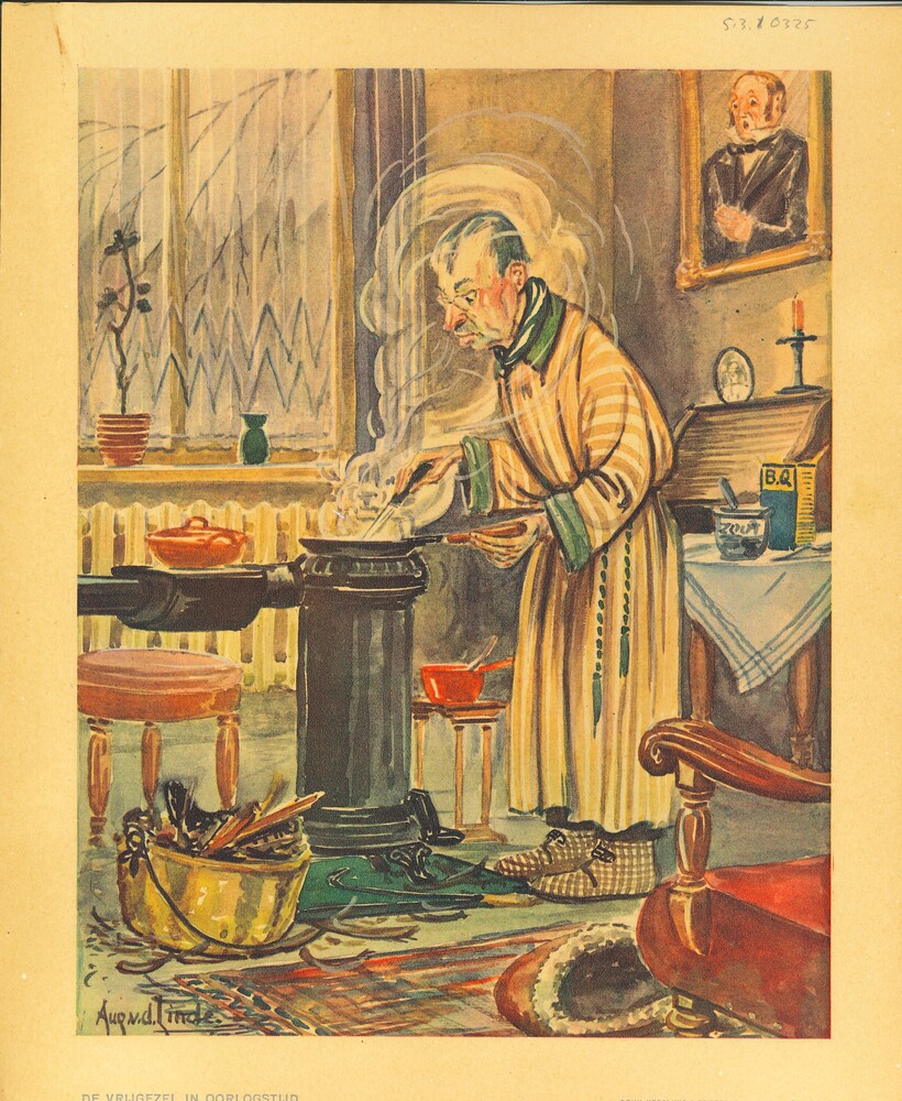 tekening "De vrijgezel in oorlogstijd" door Aug v.d....