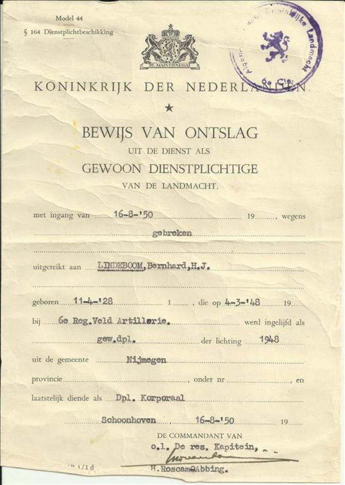 Vel "Koninklijke Nederlandsche Landmacht B.L.A. 1 R....