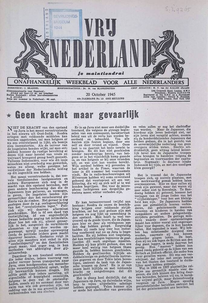 Vrij Nederland (ex-illegaliteit), bevrijdingsnummer,...