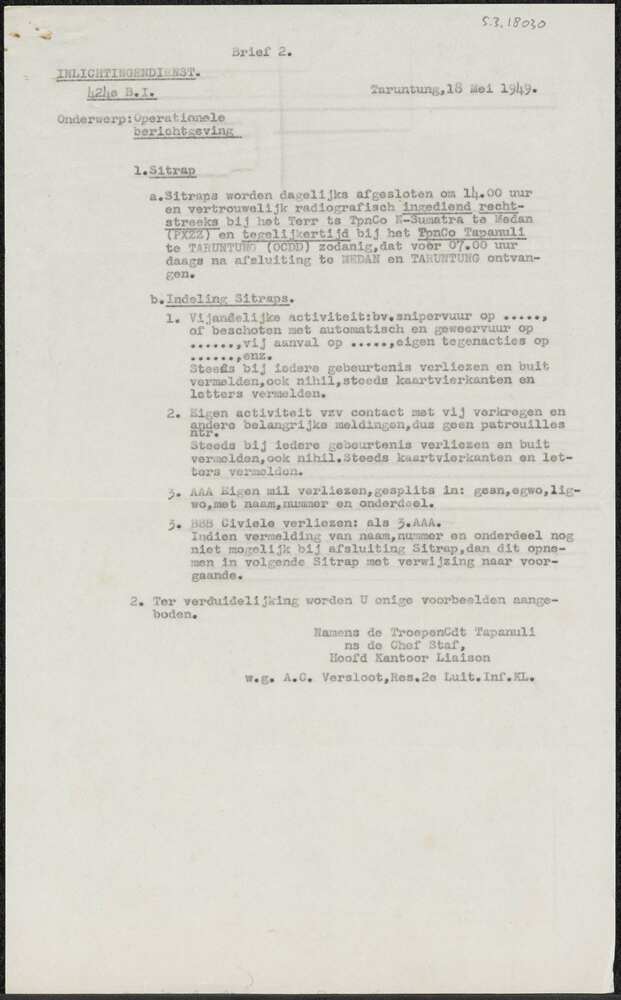 Brief van inlichtingendienst 424e Bataljon Infanteri...