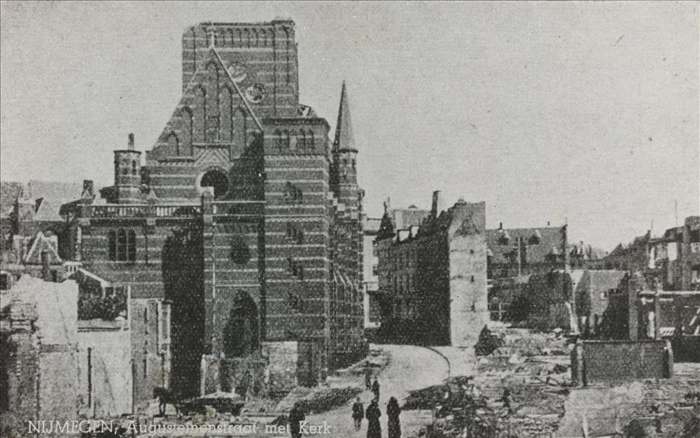 Augustijnenstraat met kerk, Nijmegen na het bombarde...