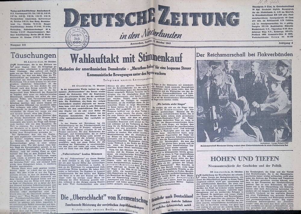 Deutsche Zeitung in den Niederlanden. 24 oktober 1943.