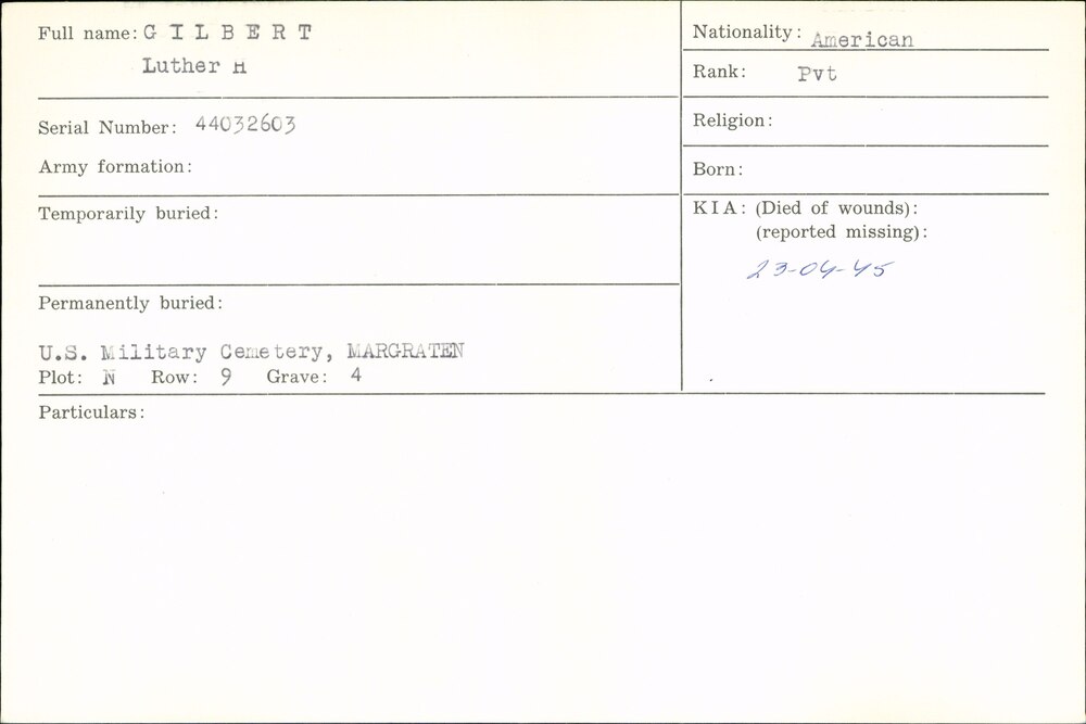 Oorlogsgraven comité kaarten Achternamen G
