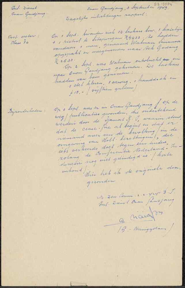 Handgeschreven dagelijks inlichtingen rapport, 3 sep...