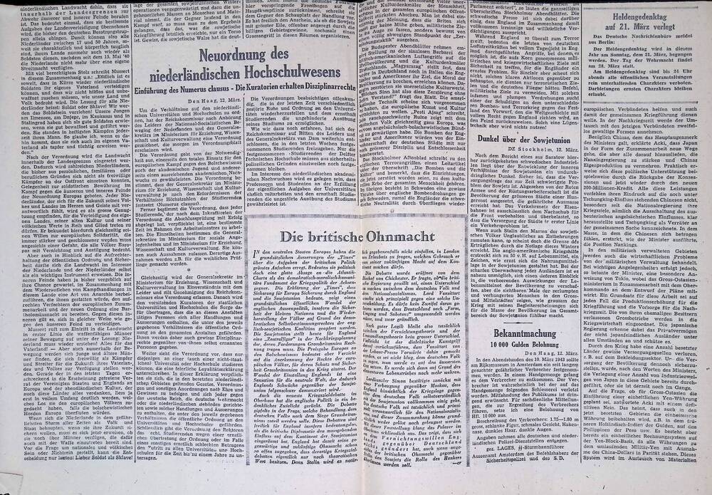 Deutsche Zeitung in den Niederlanden. 12 maart 1943.