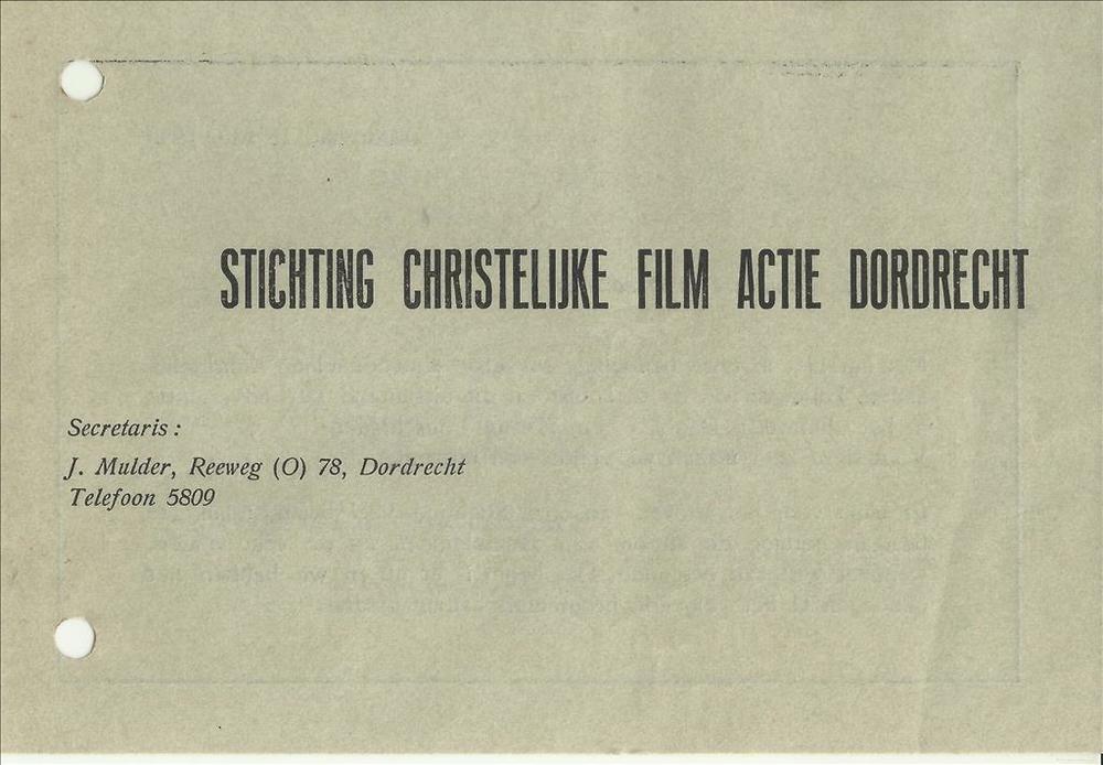 Stichting Christelijke Film Actie Dordrecht, mei 1946