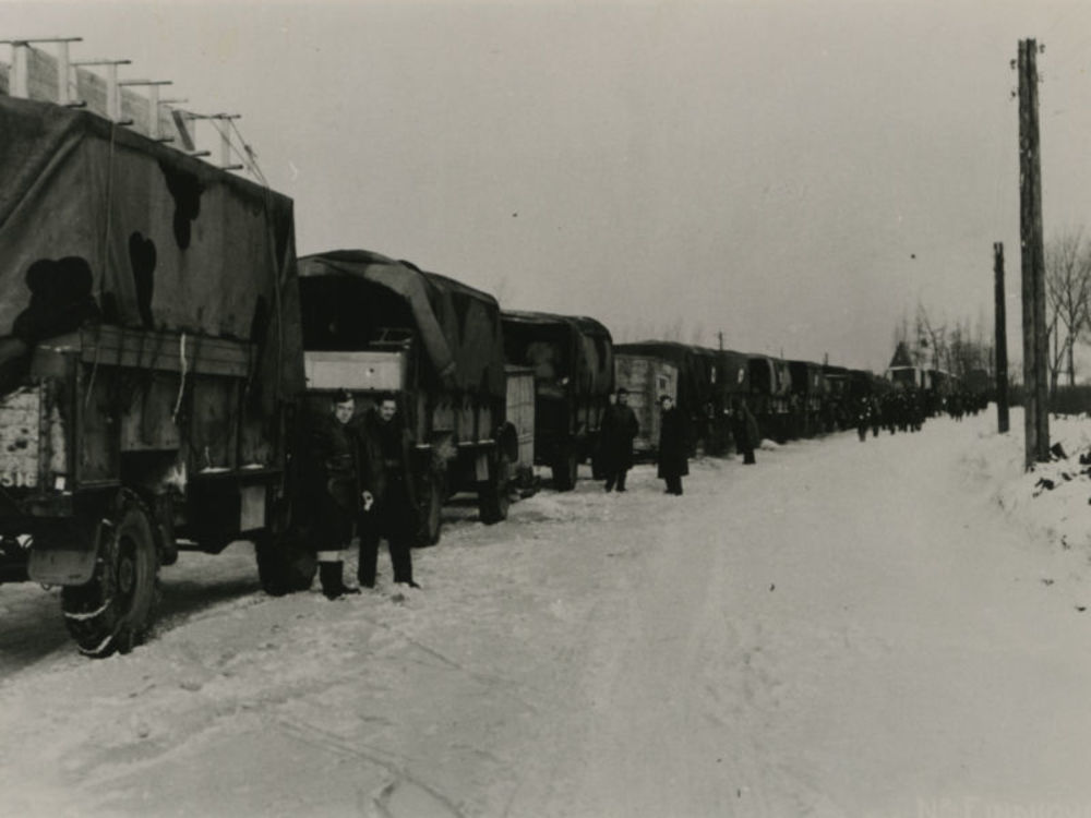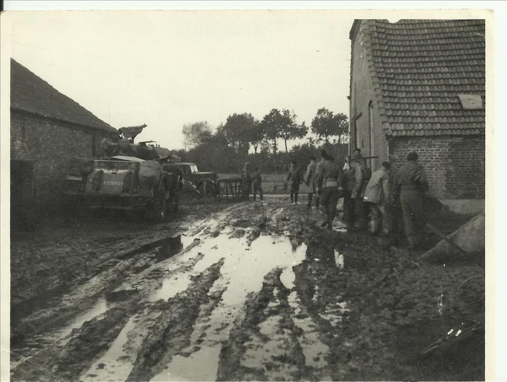 Militairen op modderig landweggetje in St Hubert