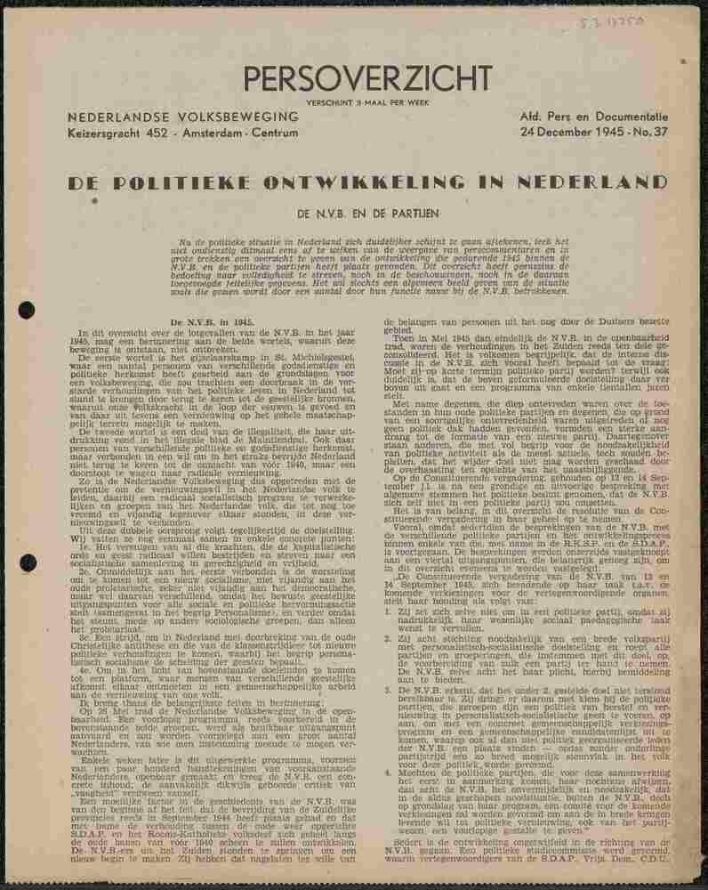 Persoverzicht Nederlandse Volksbeweging, no. 37, 24 ...