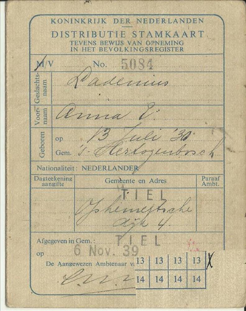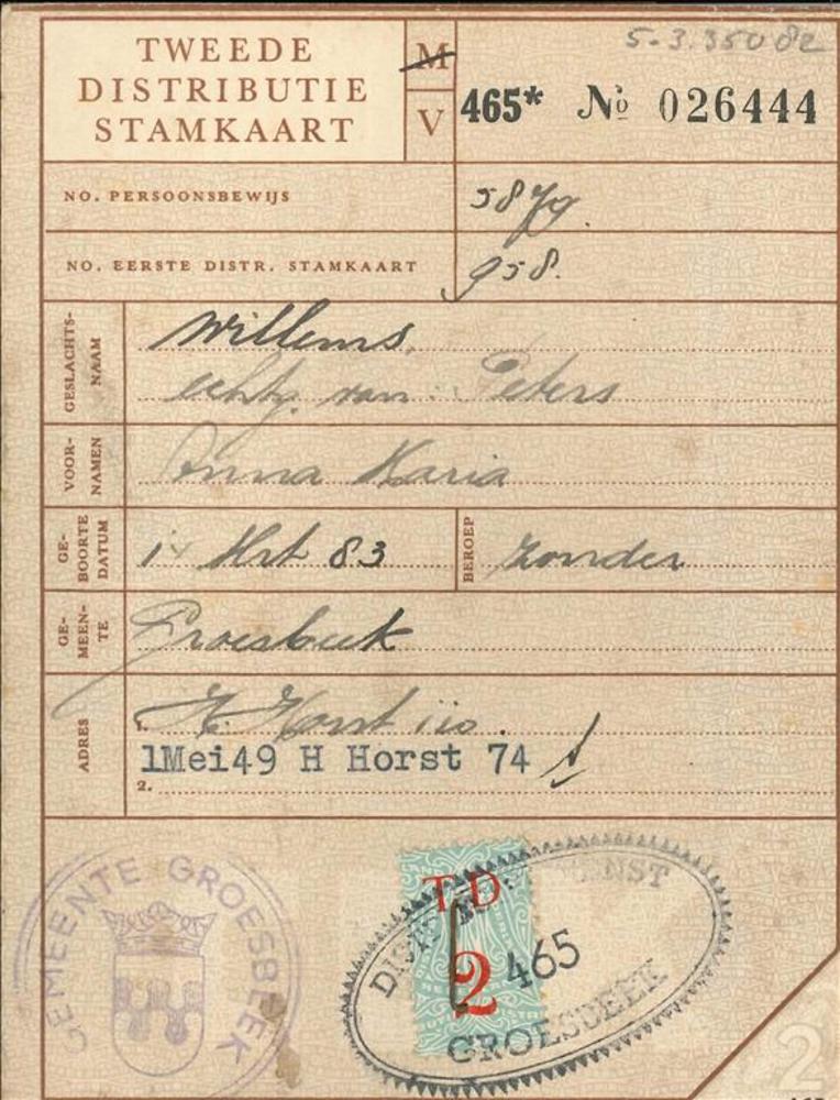 Tweede Distributiestamkaart op naam van A.M. Peters