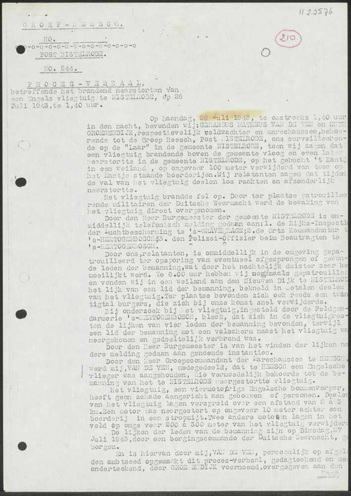 Proces-verbaal Groep Heesch Post Nistelrode No. 244,...