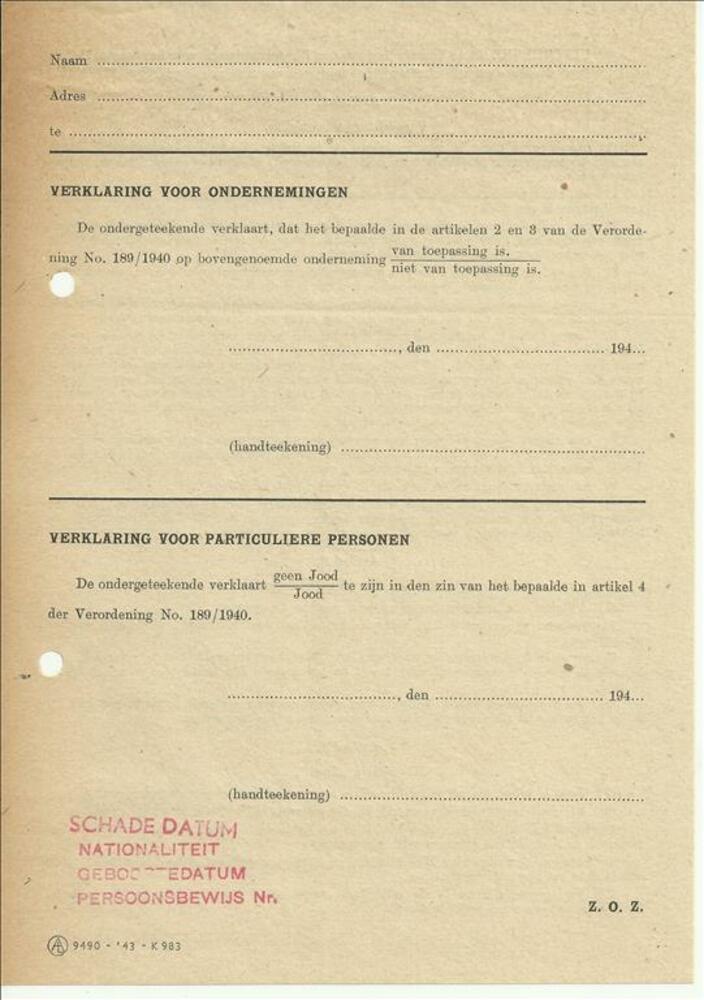 Distributiestamkaart ( tevens bewijs van opneming in...