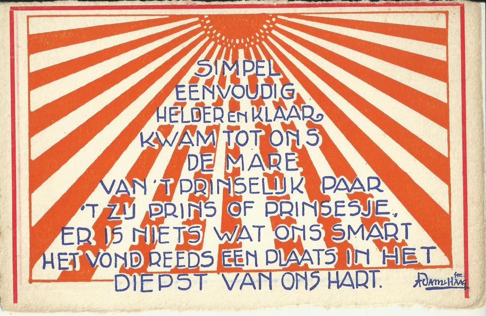 Ansichtkaart met een spreuk betreffende het Koninkli...