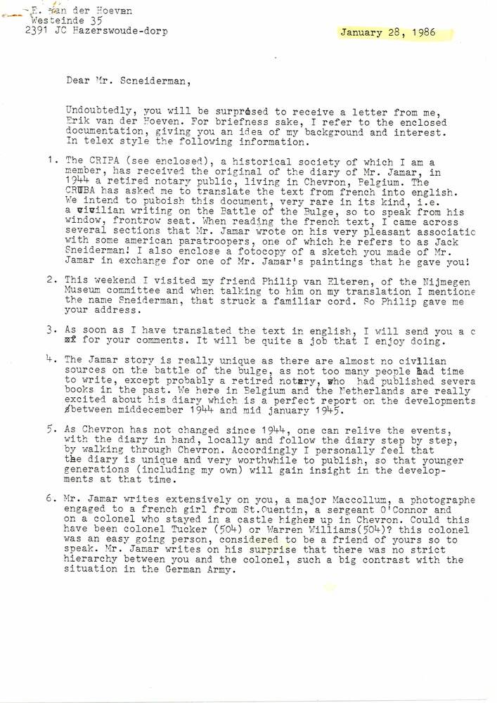 Correspondentie tussen Jack Schneiderman en Erik van...