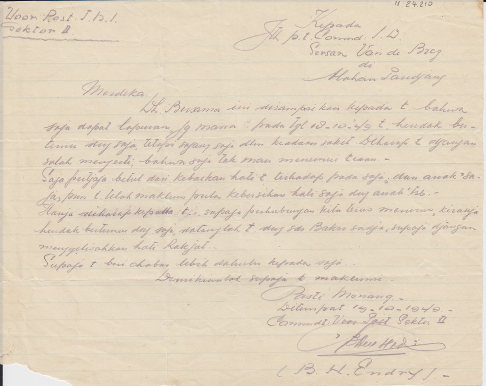 brief in het Indonesisch aan sgt. v.d. Bergh