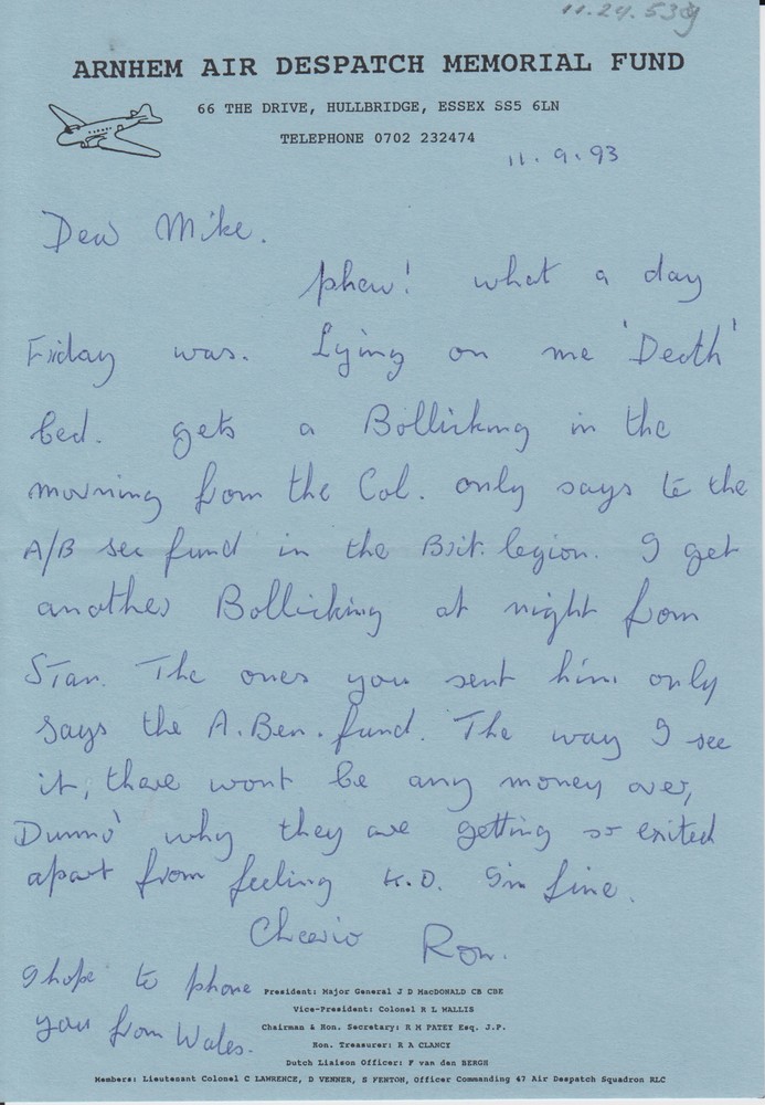aan Mike van het Arnhem Air Despatch Memorial Fund