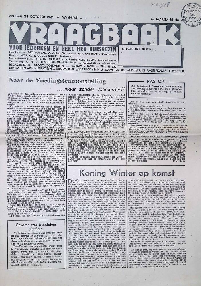 Vraagbaak, vrijdag 24 oktober 1941