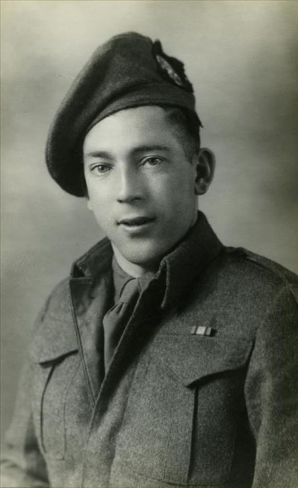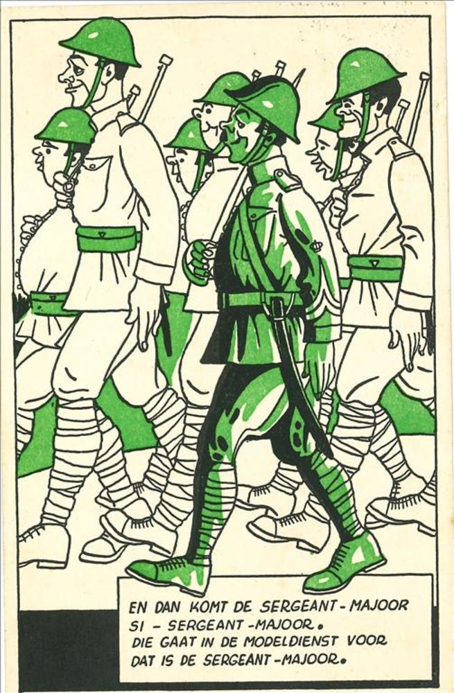 militair in battledress met kwartiermuts