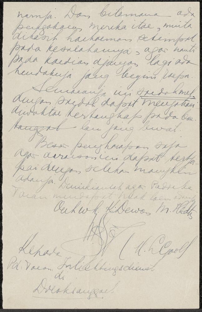 Handgeschreven notitie van L. Goal in het Maleis, d....