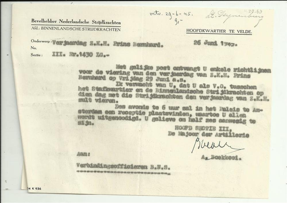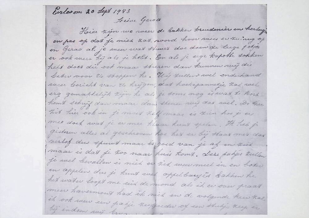 Brief in enveloppe. 20 september 1943. Aan den heer ...