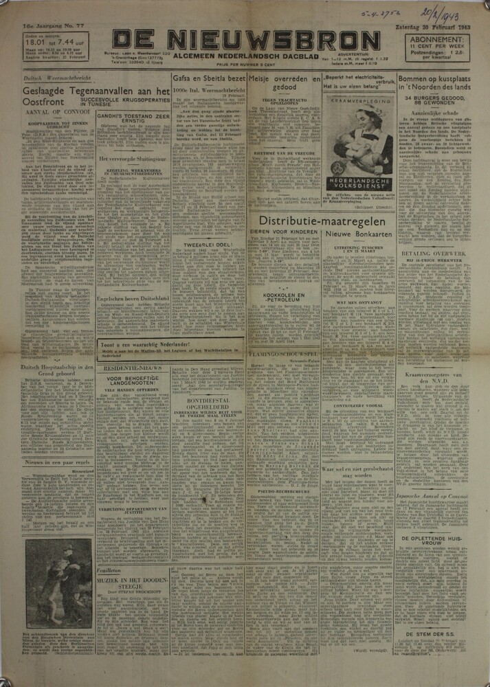 De Nieuwsbron zaterdag 20 februari 1943