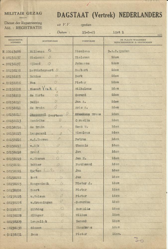 Dagstaat 15 mei 1945, vertrek van gerepatrieerden na...