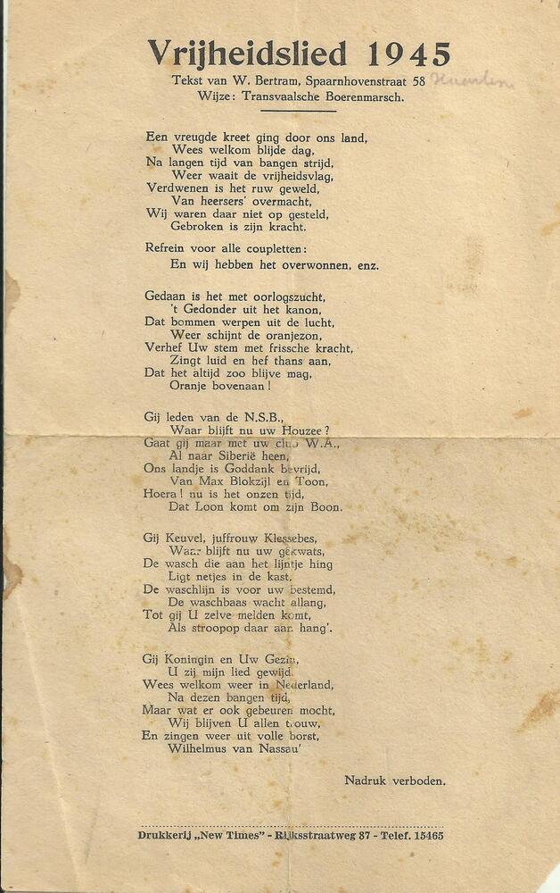 Vel met "Vrijheidslied 1945"