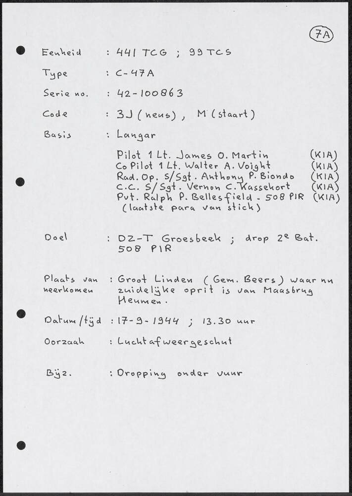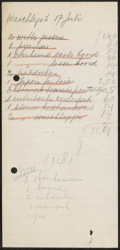 Waschlijst van 17 juli 1944