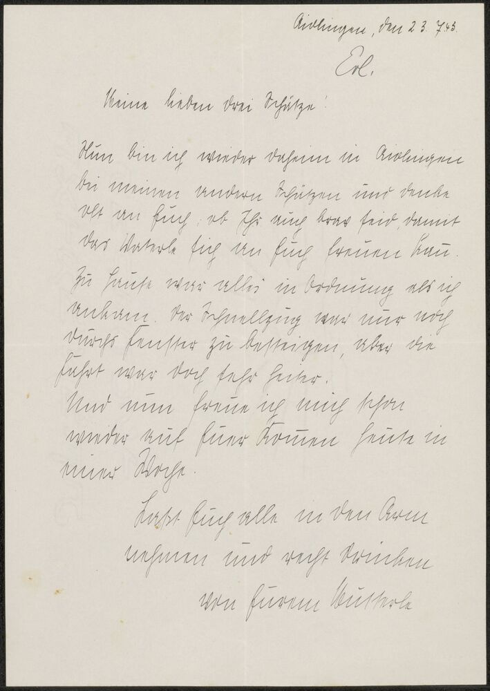 Brief van Ella aan Hubert d.d. 23-07-1943
