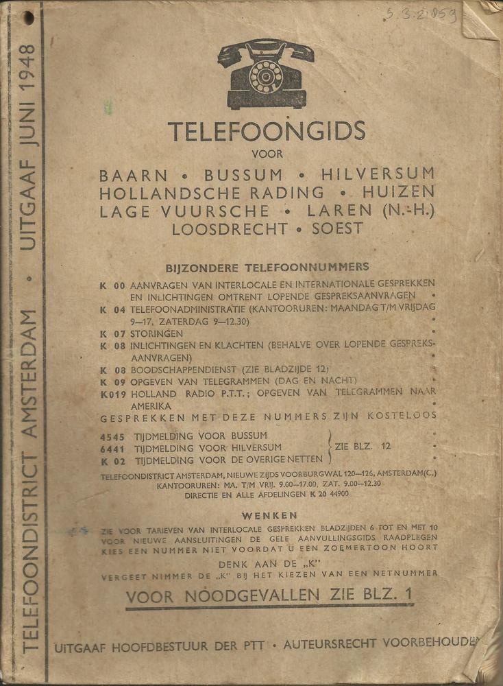 Telefoongids Amsterdam, juni 1948