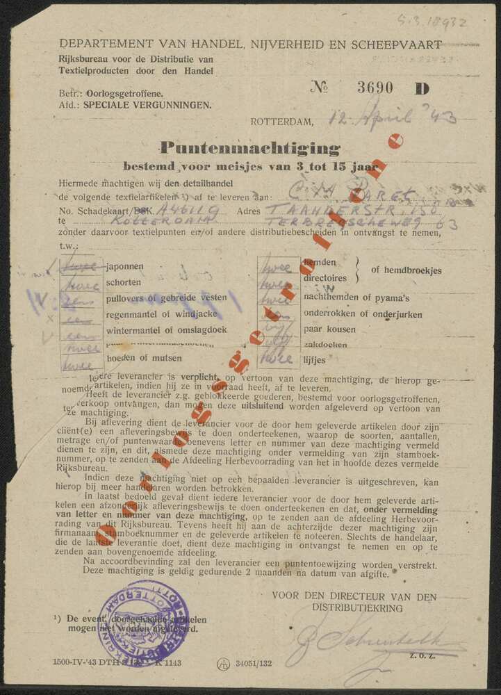Formulier Puntenmachtiging bestemd voor meisjes van ...